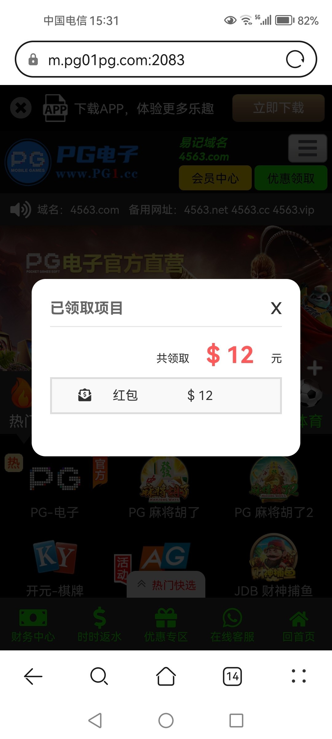 登录就自动送,网址:pg1.cc