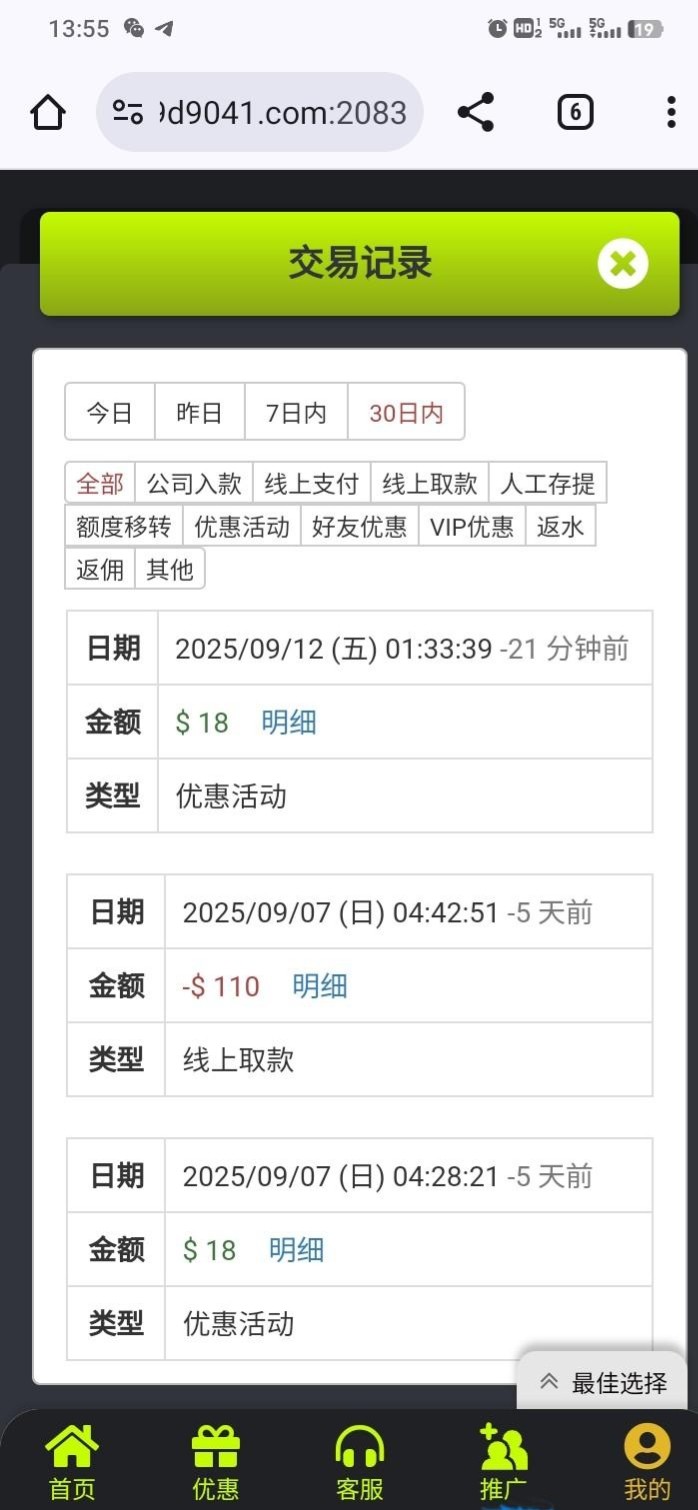 几个月没充值最近送两次了,登录看看有没有https://m.9d9041.com:2083/MemberCenter/Transaction
