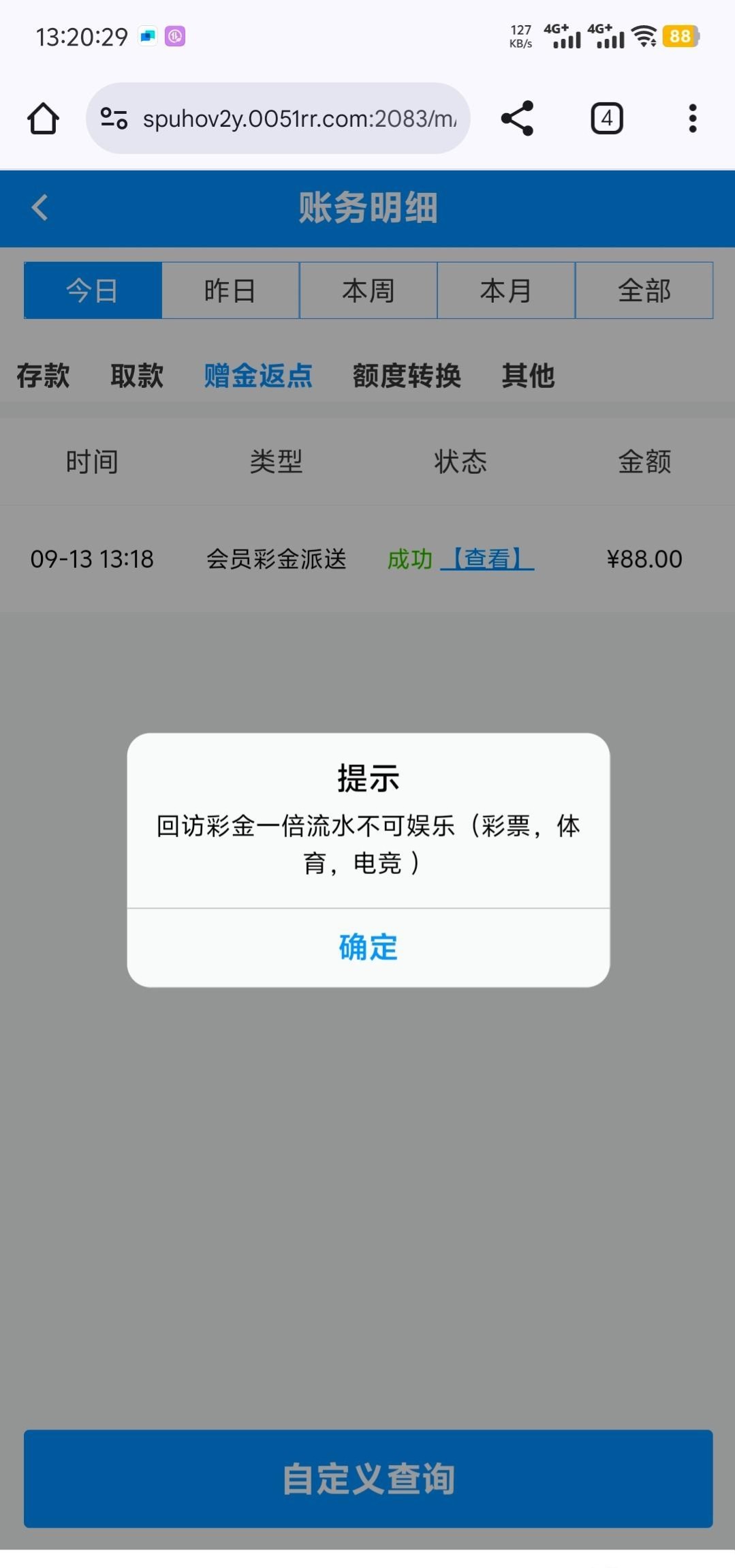 最近在这个网2-3个月没有充值 接到电话送了88闷 0051.com