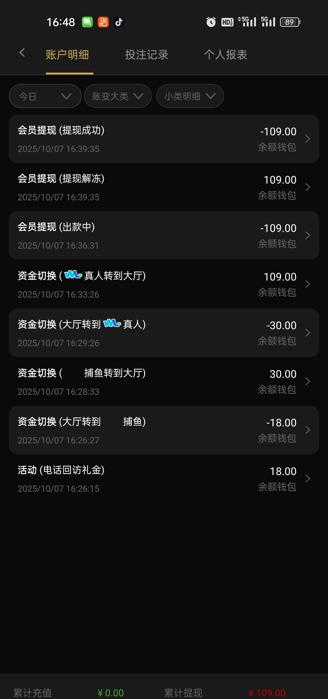 碰瓷打电话说送体验金,领了18,应该是个半黑的台子,下载线聊加595app领取,本来估计要充同等,找线聊那个客服墨迹了几句,没想到提现竟然到了,得吃109链接595.app