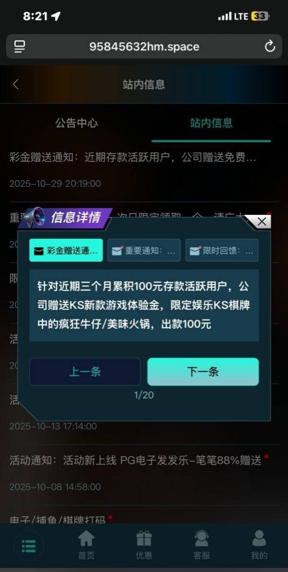 近三个月累计存款达到100以上的,登陆上去就有新游戏体验金,只能玩新出的那两个游戏,有号的可以去看看