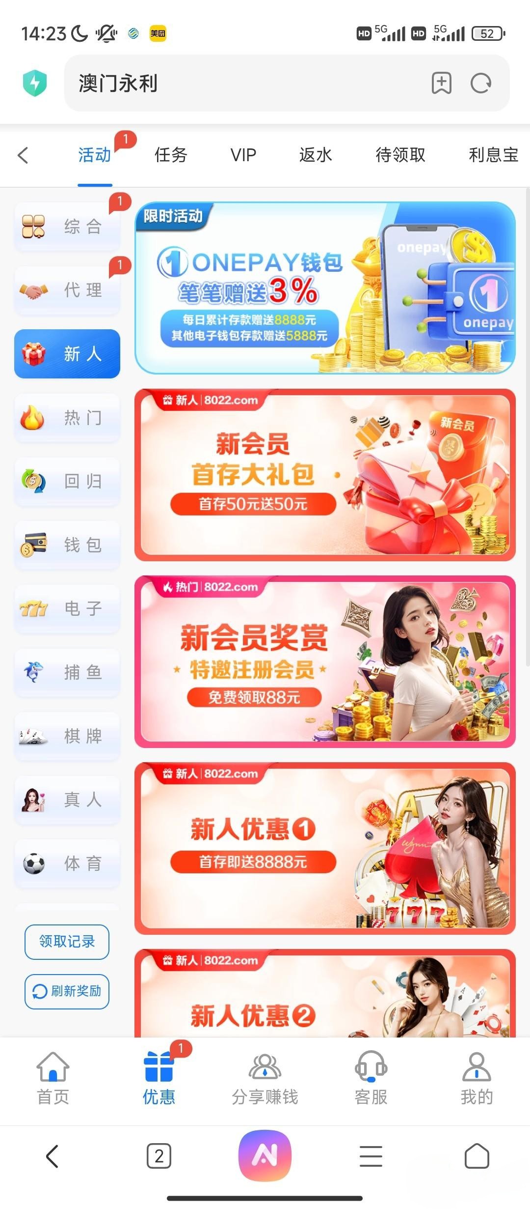 注册彩金应该都有,我是老号不支持申请