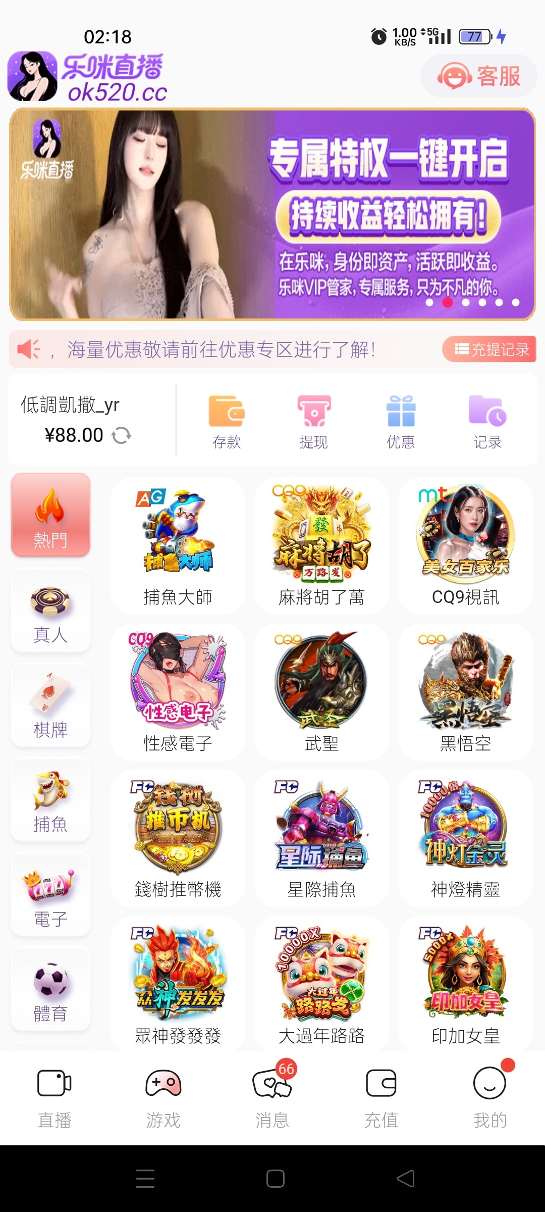 【乐咪直播】回馈88彩金