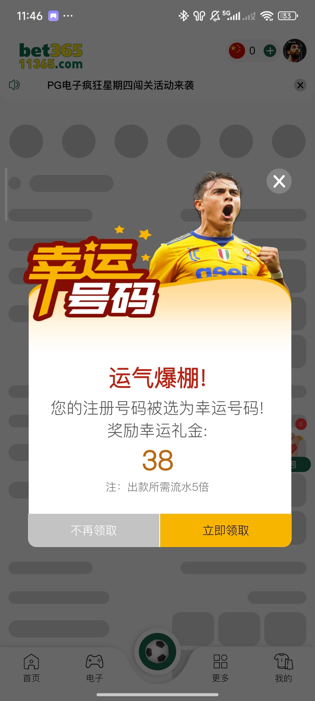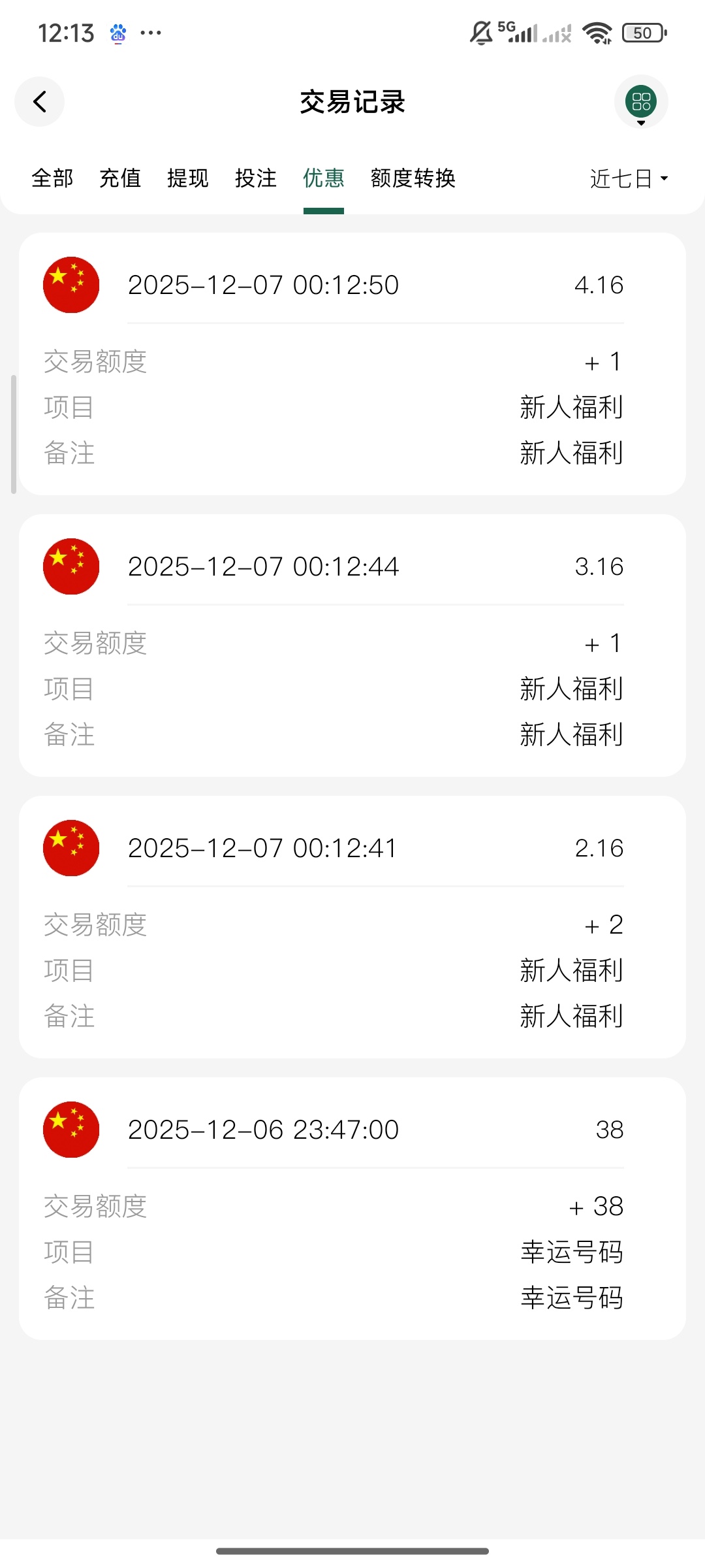 注册送了我个幸运号码彩金,没领到可以去新人福利那里领四块