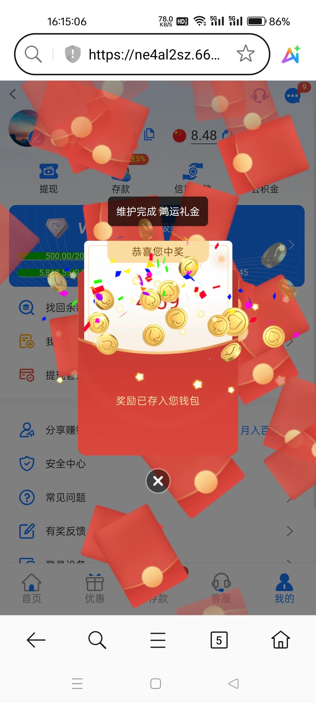 维护彩金,充值过得去看看,一个号领了两次
