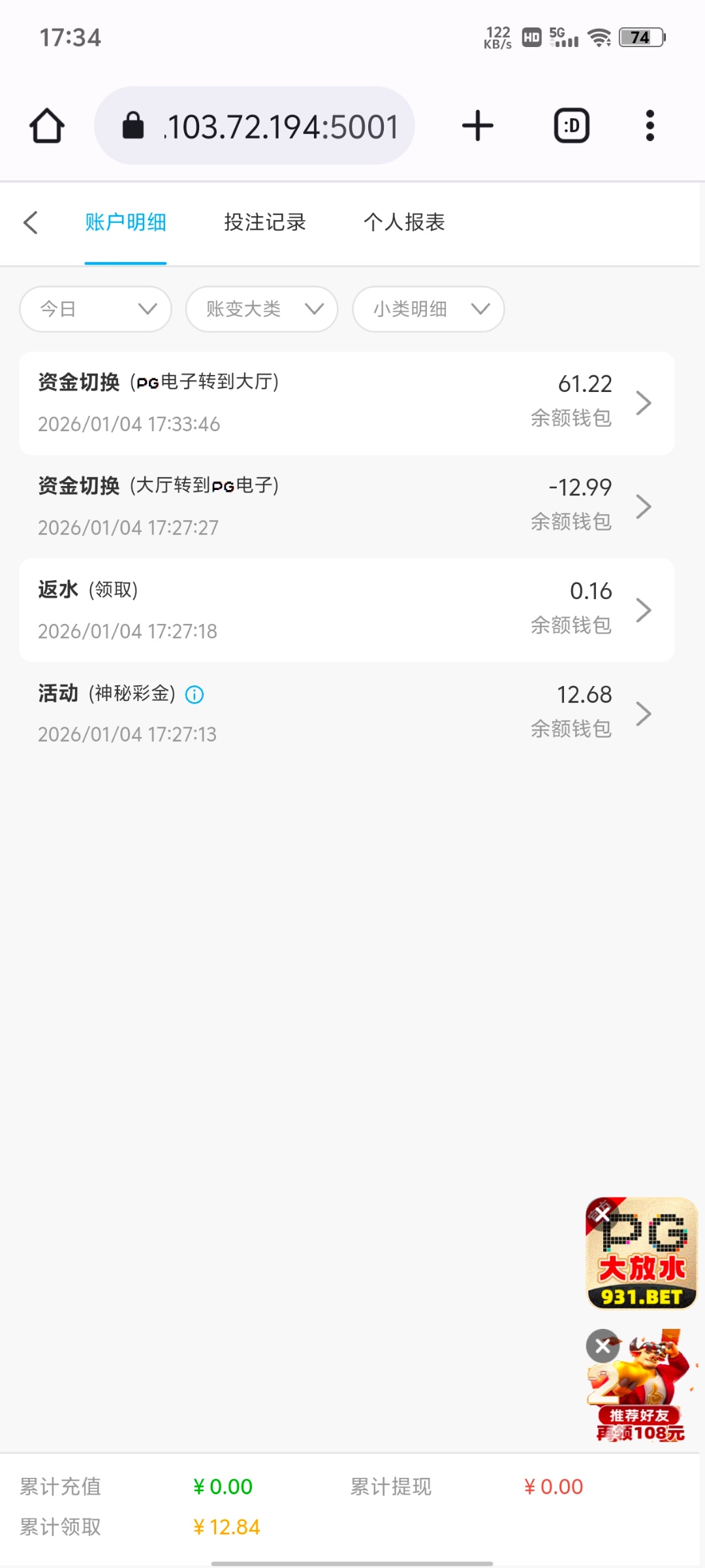 刚领的彩金,有漏看短信的老哥上去看看