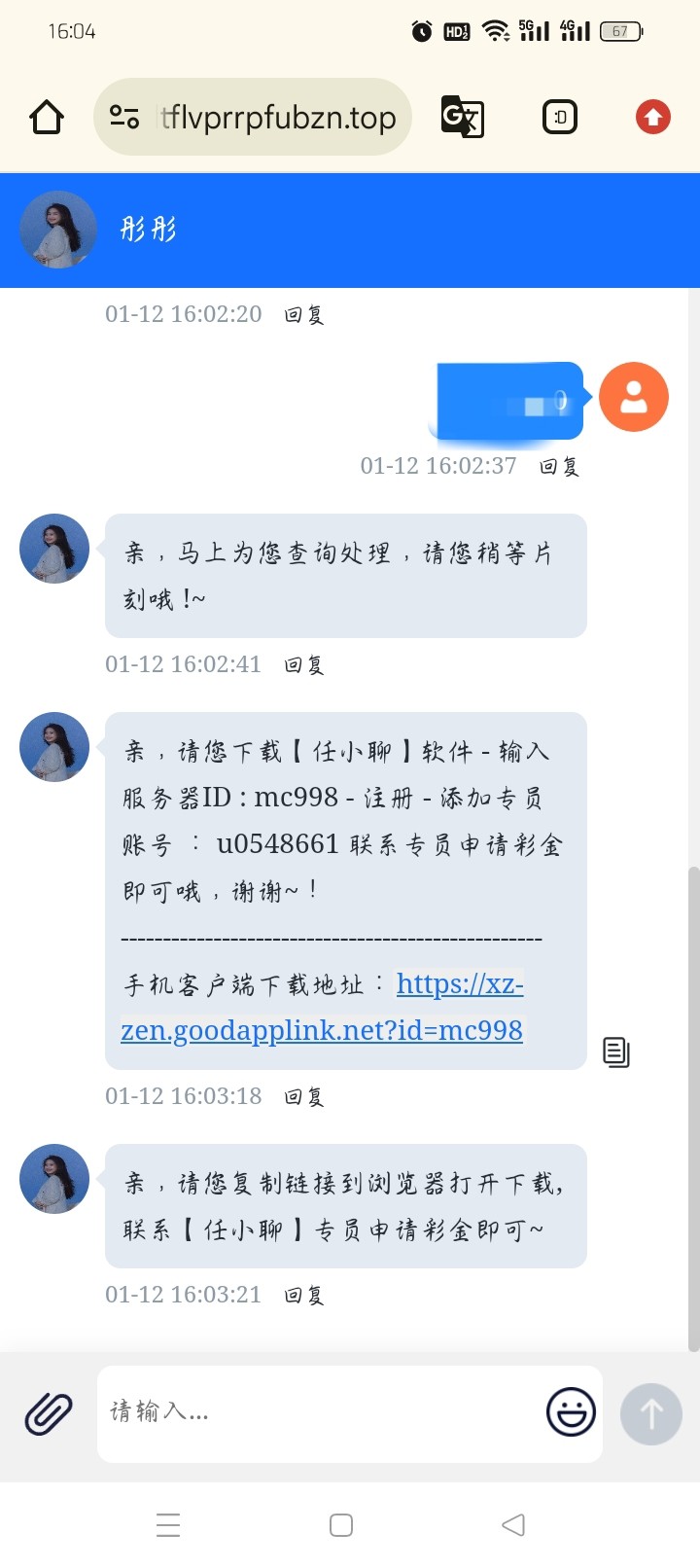 刚打电话来送了18没打出来,可以去碰瓷,找在线客服要下载任小聊申请碰瓷就行