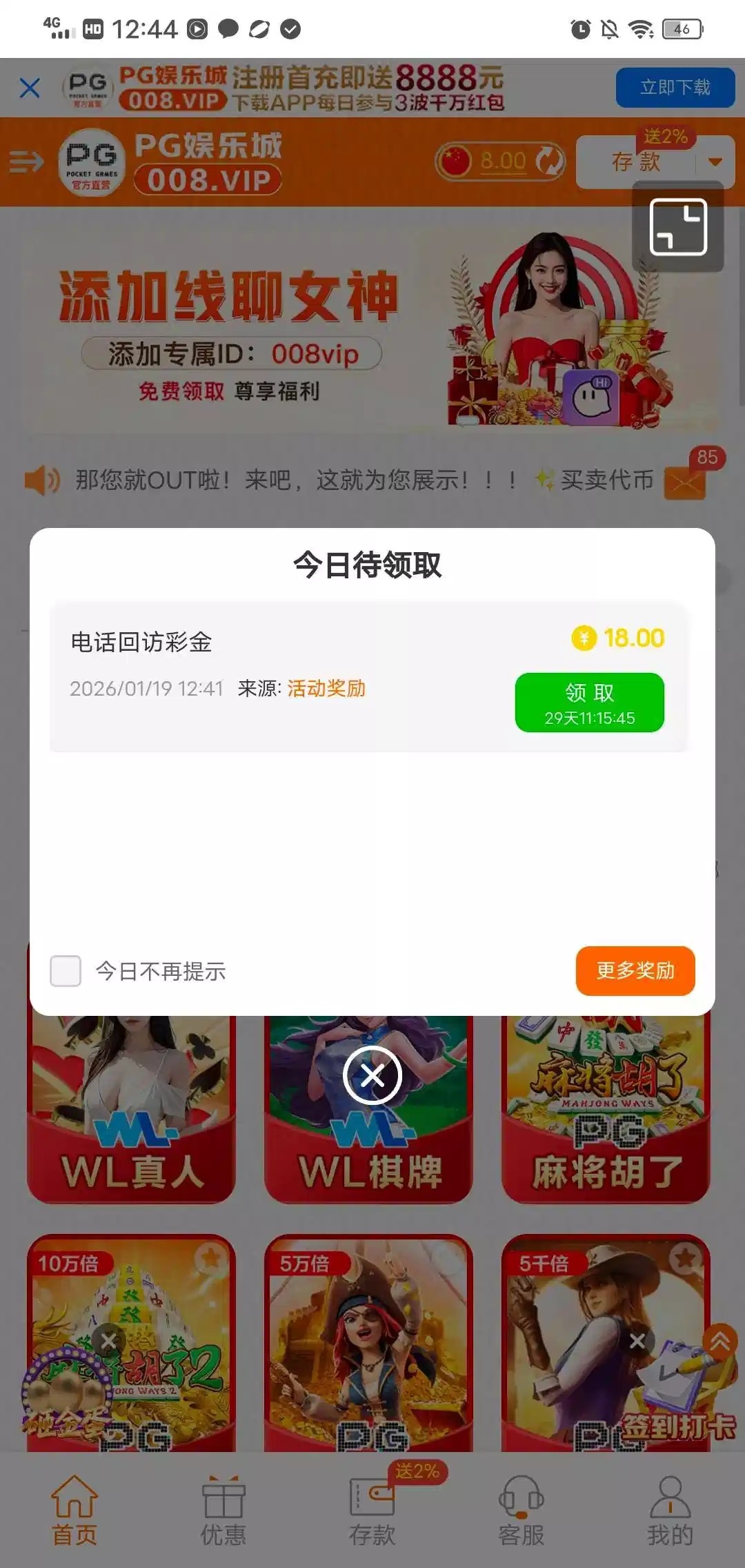 不知道啥时候注册的登录账号里有8,回访彩金18需要找线聊客服领取线聊:333aaa.cc 客服008vip平台:444008.com