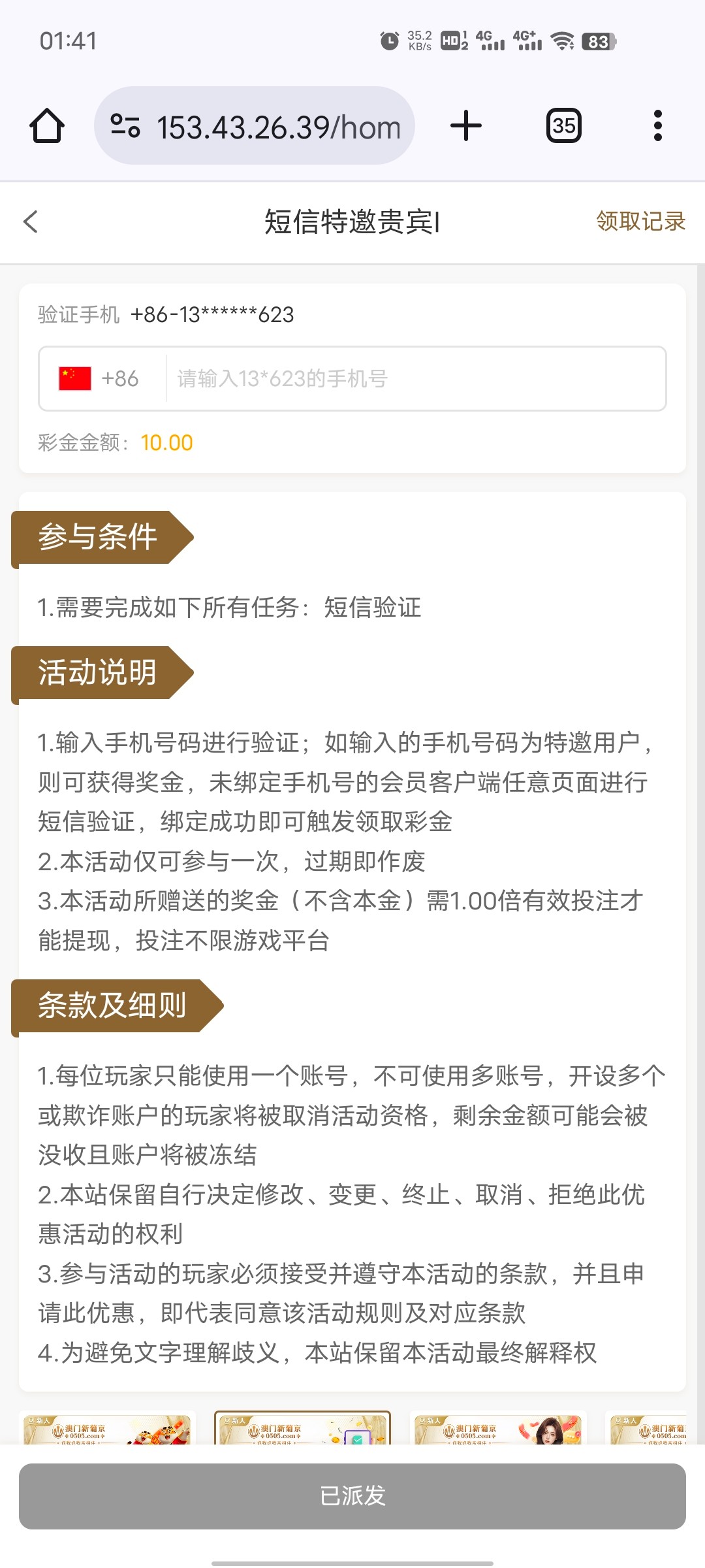 特邀碰瓷,注册验证。送10。出款自测