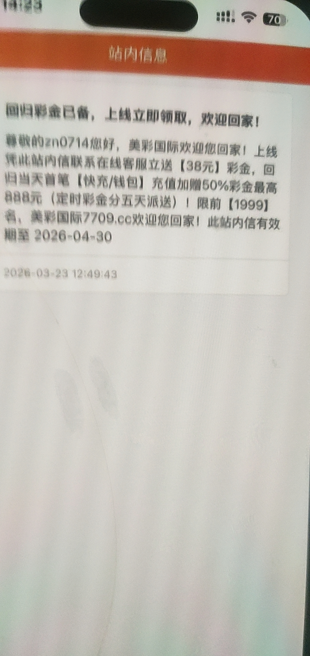 老用户有号的站内信通知客服有彩金