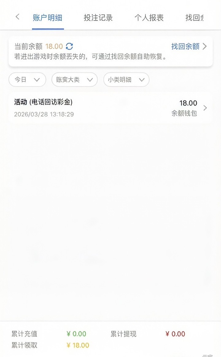 电话回访彩金,有号的可以去碰
