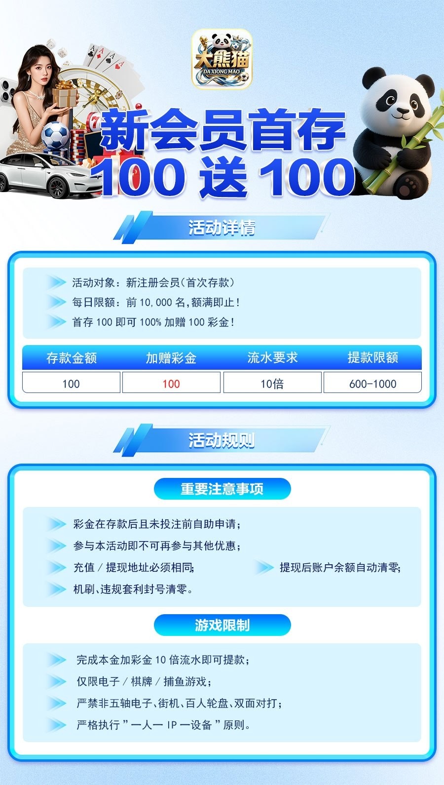 【大熊猫】100+100⚜️专属活动⚜️送6.66-888