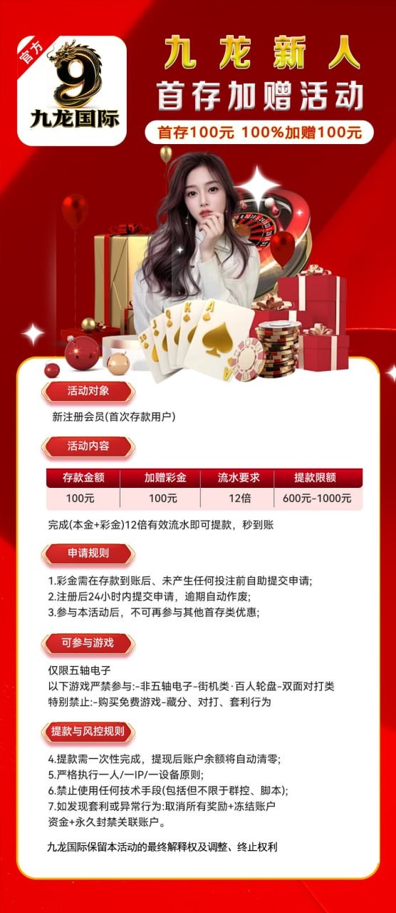【九龙国际】抽888元现金活动100+100